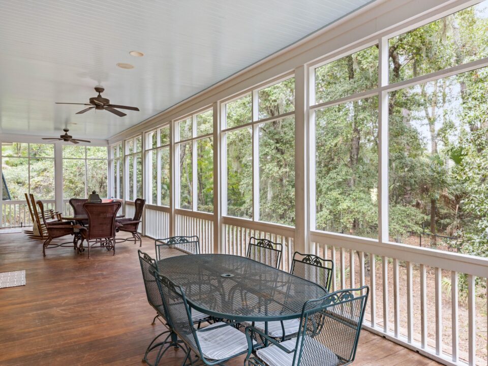 The first-floor master suite is truly masterful with a sitting area, two walk-in closets, and a spa-inspired bath featuring a glass blocked custom walk-in shower, a pedestal tub, and dual vanities. The second floor offers room for all your family and friends with a family room, wet bar, office, and 3 bedrooms all with private baths. Outdoor entertaining is a breeze with a large screened porch on the first floor, a second-story open porch, both running the length of the house, and a patio area that overlooks Kiawah Island Club’s Cassique golf course.