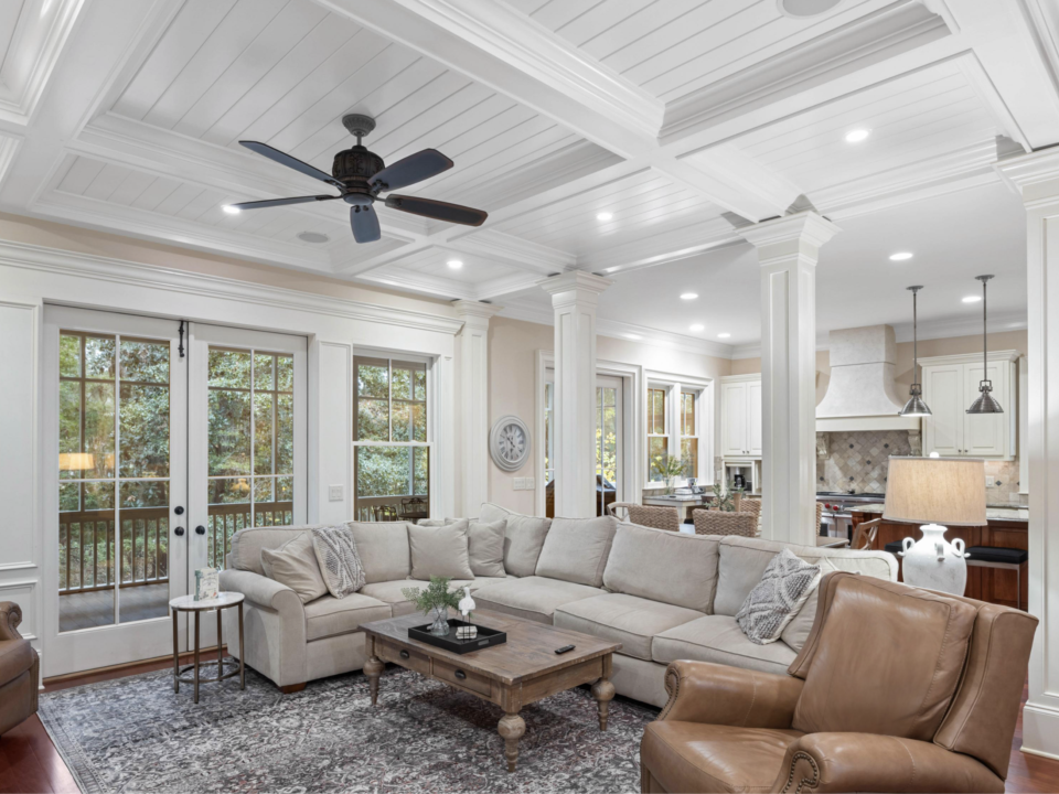 Custom built in 2009 with many high-end features and quality finishes throughout, 2867 Old Drake’s floor plan flows with ease, from the spacious great room to the open kitchen and elegant dining room.